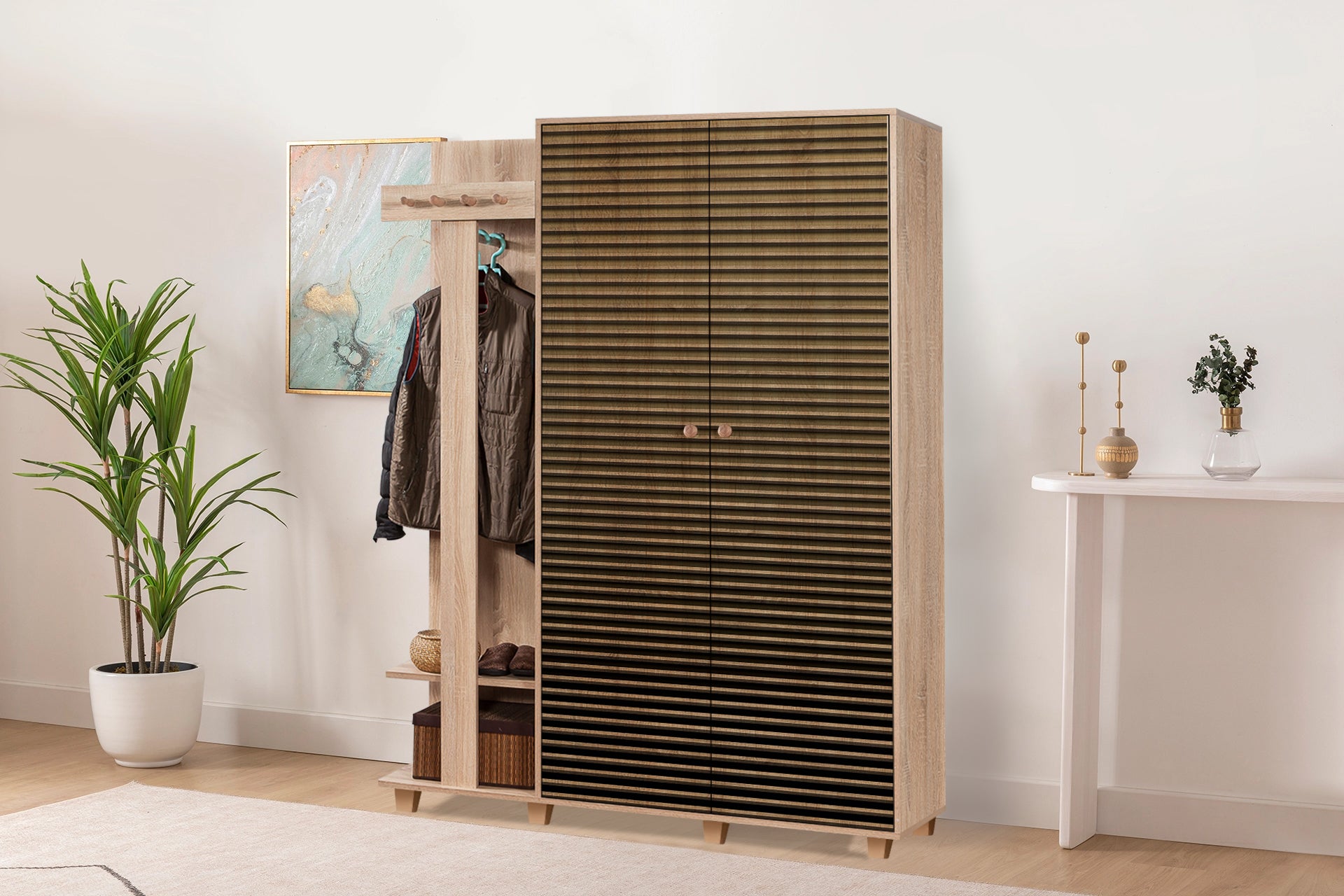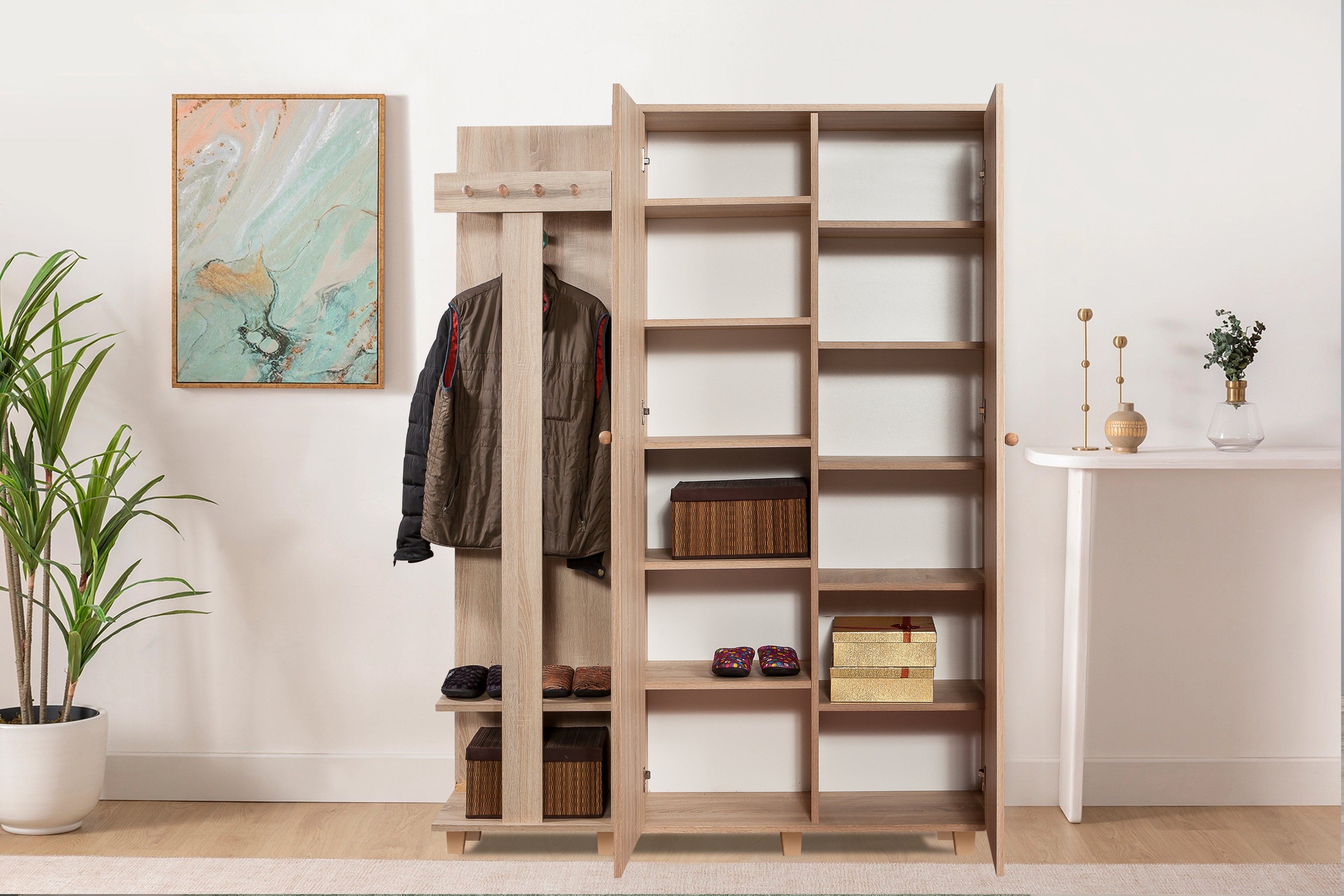 amaçlı kullanım, antrede portmanto, yatak odanızda gardırop olarak kullanabilirsiniz.