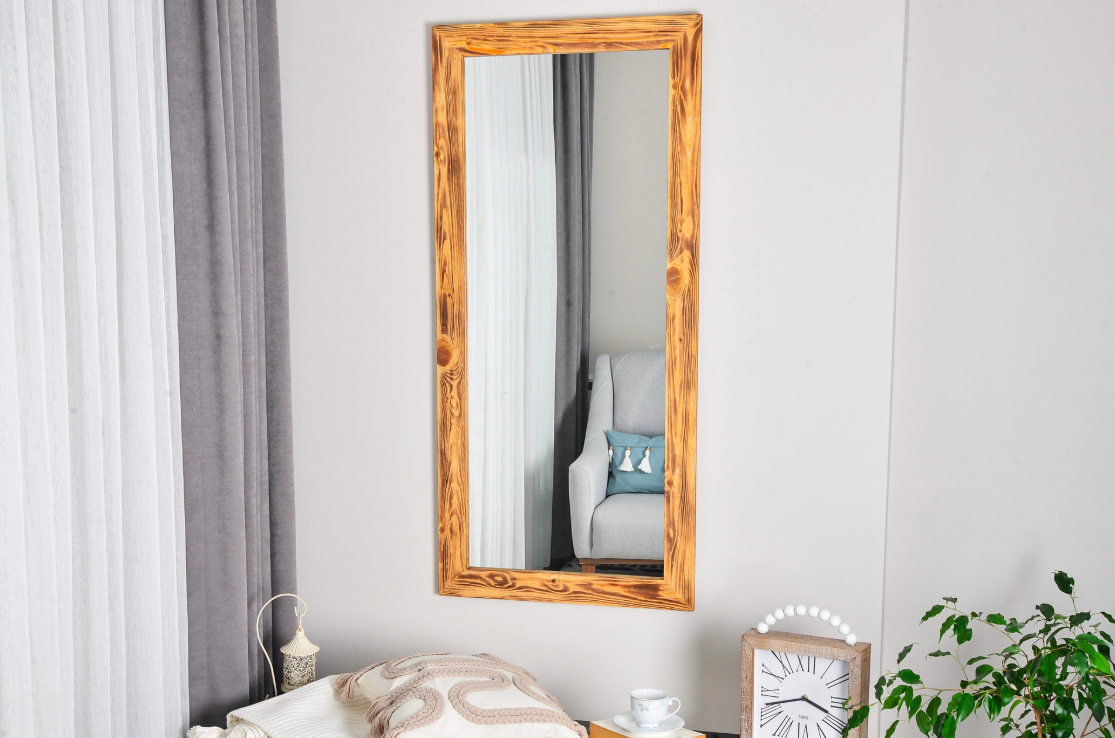 • Doğal Ahşap Dikdörtgen Dekoratif Boy Aynası, 150x70 cm