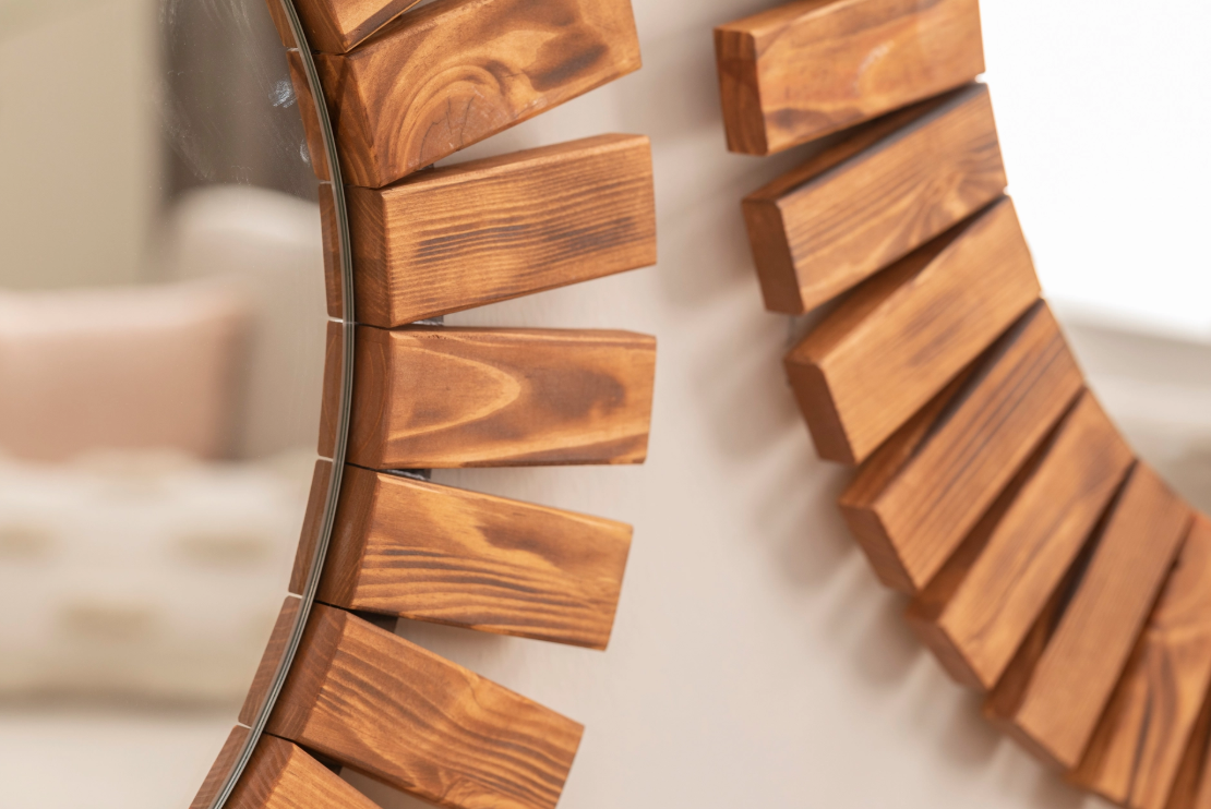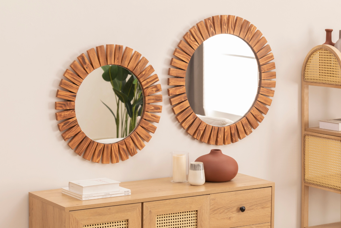 • Masif Ahşap İkili Yuvarlak Dekoratif Ayna, 60x50 cm