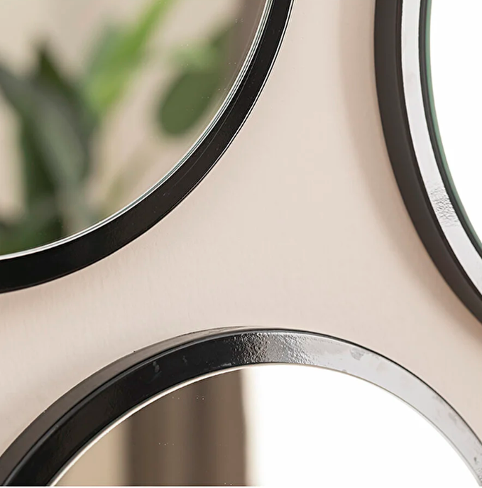 Ek Bilgiler: 1. Sınıf 18mm MDF kullanılarak CNC'de üretilmiştir. Ürüne siyah renk PVC baskı uygulanmıştır. Bu sayede ürününüz şık ve kaliteli görünür. Ayrıca temizliği ise oldukça kolaydır. Salon, yatak odası, banyo, antre dilediğiniz mekanda kullanabilirsiniz. 1. Sınıf şişecam doğa dostu (Bakırsız ve Kurşunsuz)Flotal ayna  kullanılmıştır. Flotal ayna daha net, parlak ve derin görüntü sağlar. Ebat ölçüsü; Herbir ayna 35x35 cm'dir. Askı aparatı arkasında montelidir. Paket içerisinden çıkan dübel ve vida ile duvara asılabilir.