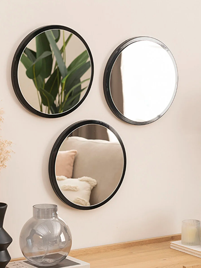 Siyah Mdf Üçlü Duvar Aynası, 32x32 cm
